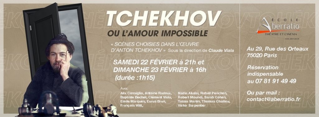 L’école de théâtre et ses élèves de deuxième année vous présente Tchekhov les Samedi 22 février à 21 h et